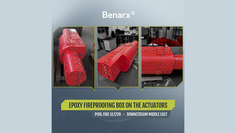 Benarx® Epoxy Intumescent Fireproofing Boxes manufactured by Beerenberg have been successfully delivered (108x units) for pneumatic and hydraulic actuators to protect them up against hydrocarbon pool fire in Halfaya project, Iraq. With superior PFP properties, this removable intumescent coating has one of the best-in-class fire performance at low thickness. Made by stainless steel skeleton covered by epoxy intumescent coating.