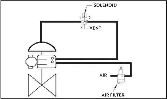 Such example of introduction of solenoid in valve loop is shown in Figure 1 for reference purpose. In case of double-acting actuator, the configuration is more complex with additional accessories.
