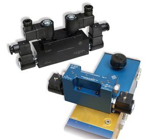 A line of zero-leak solenoid actuated directional valves for reliable actuation of single- or double-acting cylinders has been introduced by Interface Devices, Inc. The D03 Series valves can be used with most hydraulic pumps to maintain pressure for long periods without replenishing the pressure supply. This prevents the hydraulic supply from consuming energy or generating heat. These 3- and 4-way directional control valves are poppet-style and solenoid actuated. They are ideal for applications with pressures up to 5000 psi where pressure and flow are intermittent and they are designed for mounting to an international standard valve subplate (D03, NG6, ISO 03). The 49 mm width allows for mounting multiple valves on standard 50.8 mm centers. This series of valves is constructed of premium components, including 7075-T651 extruded aluminum bar bodies and hardened and ground steel poppets and seats. Backup rings and O-ring seals are PTFE and polyurethane. The valves are compatible with most standard industrial grade hydraulic fluids and operate at temperatures from -54C to 104C.