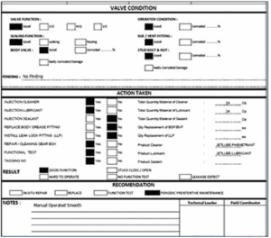 - Valve condition inspection database: Developing a valve condition inspection database is an excellent approach to systematically tracking maintenance activities, monitoring performance and enhancing future programs based on data-driven insights.
