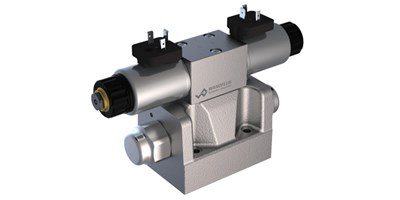 This spool valve from Wandfluh is pilot operated by a new proportional pressure reducing valve. The main control spool can thus be controlled very precisely with a low hysteresis. The valve can be operated up to a volume flow of 200 l/min and a pressure of up to 350 bar. The nominal flow at a pressure drop of 10 bar is 90 l/min and can be sensitively controlled by a variable solenoid current. The valve is perfectly suitable for demanding applications, due to its high resolution, high volume flow and low hysteresis. Also, the pilot operated valve is used where high volume flows have to be controlled. Due to the large flow range and the high stiffness of the actuation as a result of the pilot control, these valves are suitable for applications where fast acceleration and deceleration processes, high speeds and sensitive motion sequences are required. The applications are in the industrial and mobile hydraulics for smooth control of hydraulic actuations. The valve of nominal size NG10 is designated as WVPFA10.